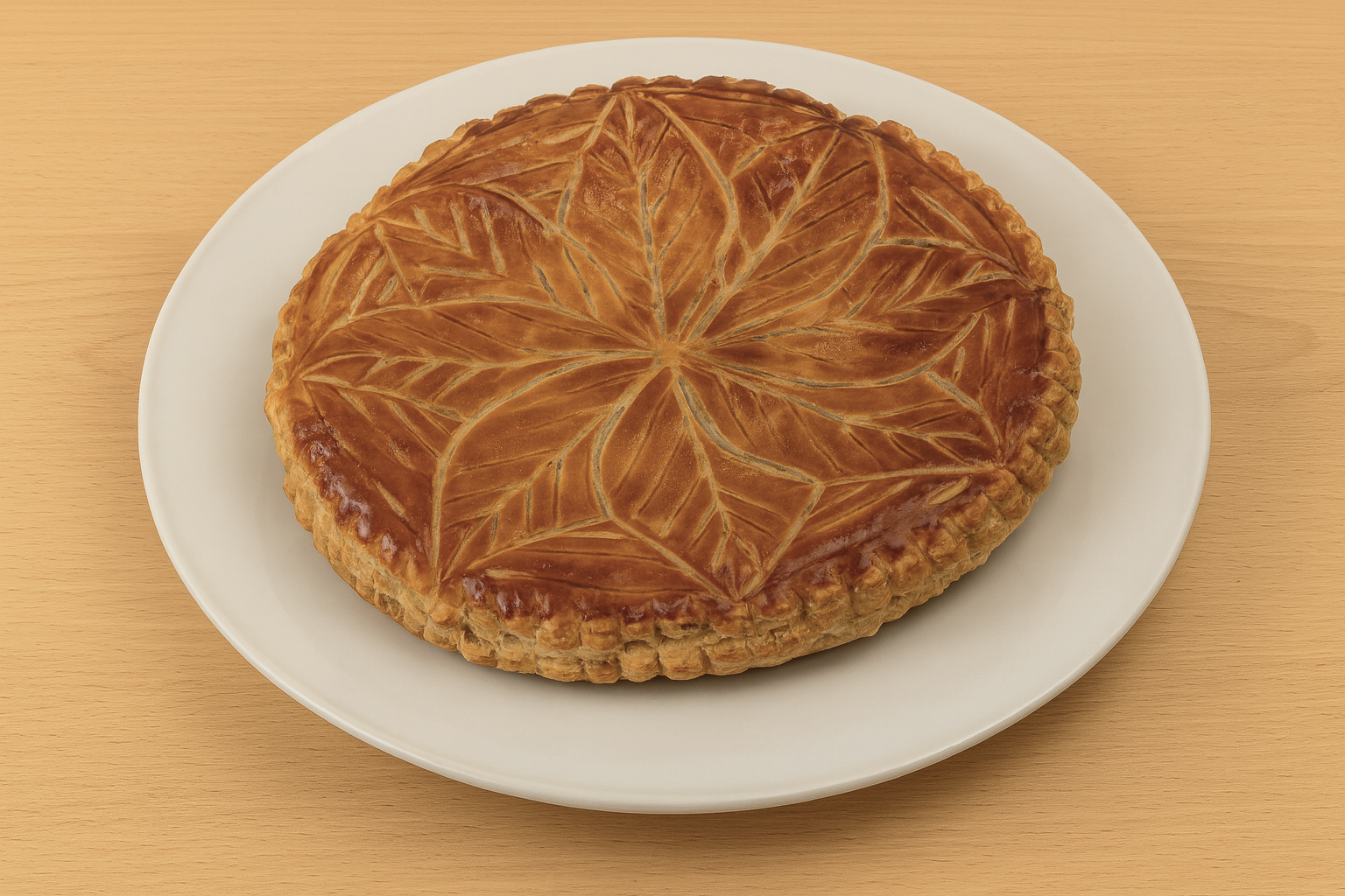 La galette des rois à la frangipane est une pâtisserie traditionnelle de janvier, composée de pâte feuilletée croustillante et d’une garniture fondante à base de crème d’amandes et de crème pâtissière, partagée lors de l’Épiphanie.